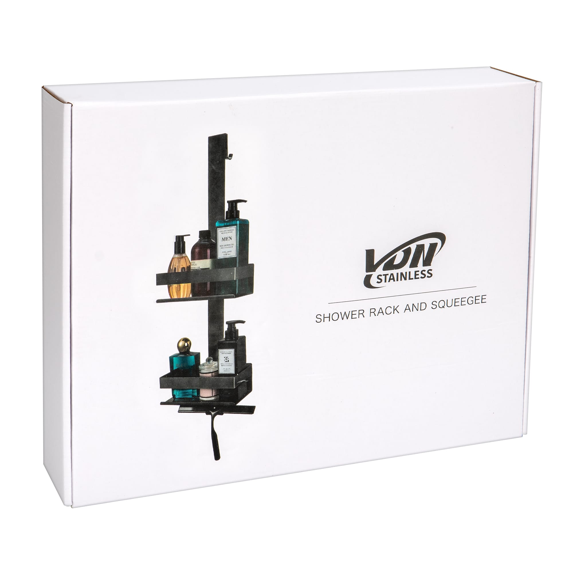 Gemaakt van hoogwaardig roestvrij staal is dit doucherek perfect bestand tegen vochtige omstandigheden en roestvorming. Dankzij de twee ruime opbergniveaus heb je volop ruimte voor al je douchebenodigdheden zoals shampoo, conditioner en douchegel. Bovendien wordt het rek geleverd met een stijlvolle zwarte douchewisser, zodat je direct compleet bent.