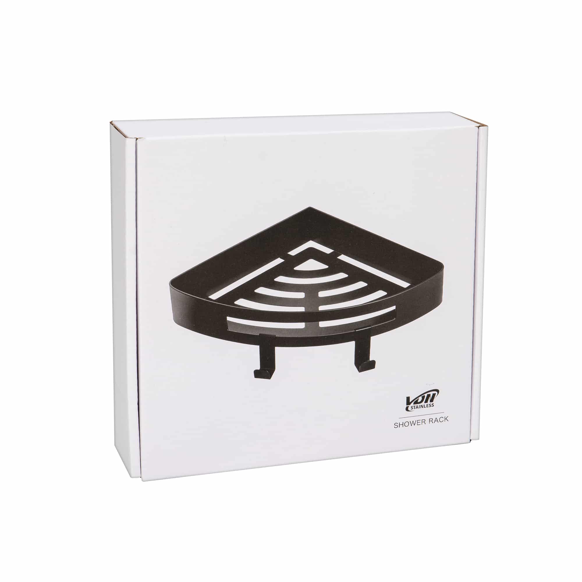 Dit zwarte doucherekje plaats je heel gemakkelijk in de hoek van je douchecabine. Ruimtebesparend en toch genoeg plaats voor al je persoonlijke douche en badproducten zoals douchegel en shampoo. Met de meegeleverde pluggen en schroeven monteer je het doucherek eenvoudig en stevig aan de muur. De robuuste bevestiging zorgt voor een draagvermogen van maar liefst 10 kg.