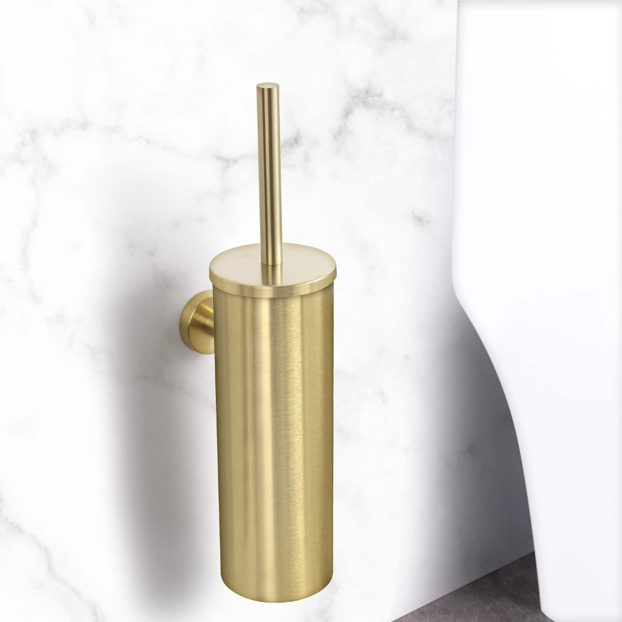 De VDN Stainless hangende toiletborstel met houder in goudkleur is een luxe en praktische toevoeging aan een modern toilet of badkamer. Deze wandgemonteerde wc-borstelhouder combineert een strak design met optimaal gebruiksgemak en zorgt voor een nette en hygiënische uitstraling. De toiletborstelhouder is vervaardigd uit hoogwaardig roestvast staal (RVS) en is daardoor perfect geschikt voor gebruik in vochtige ruimtes. Dankzij de wandmontage blijft de vloer vrij, wat het schoonmaken eenvoudiger maakt en bijdraagt aan een opgeruimde look. De goudkleurige afwerking geeft deze hangende toiletborstel een stijlvolle en moderne uitstraling en maakt je toilet helemaal compleet met de kwaliteit van VDN Stainless.