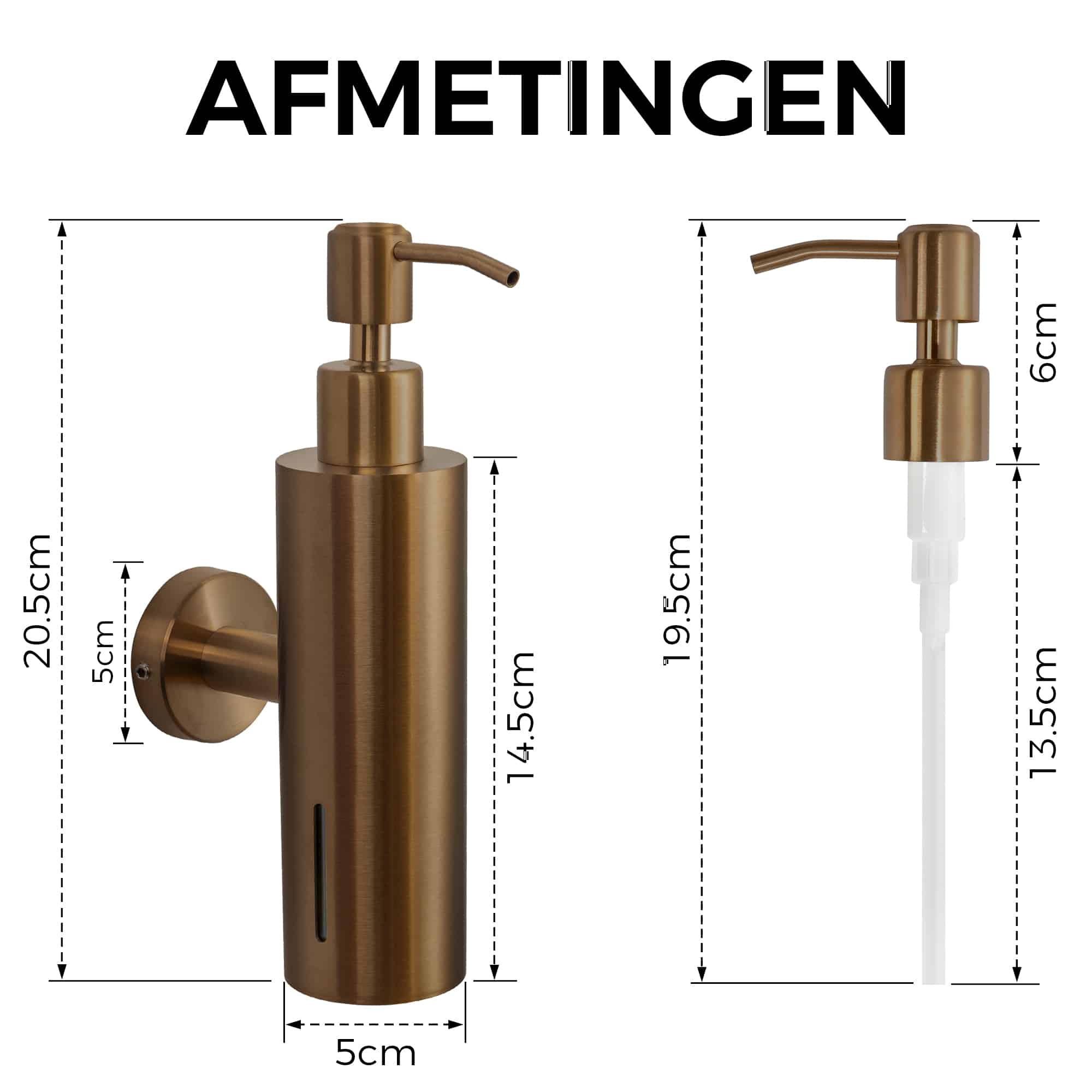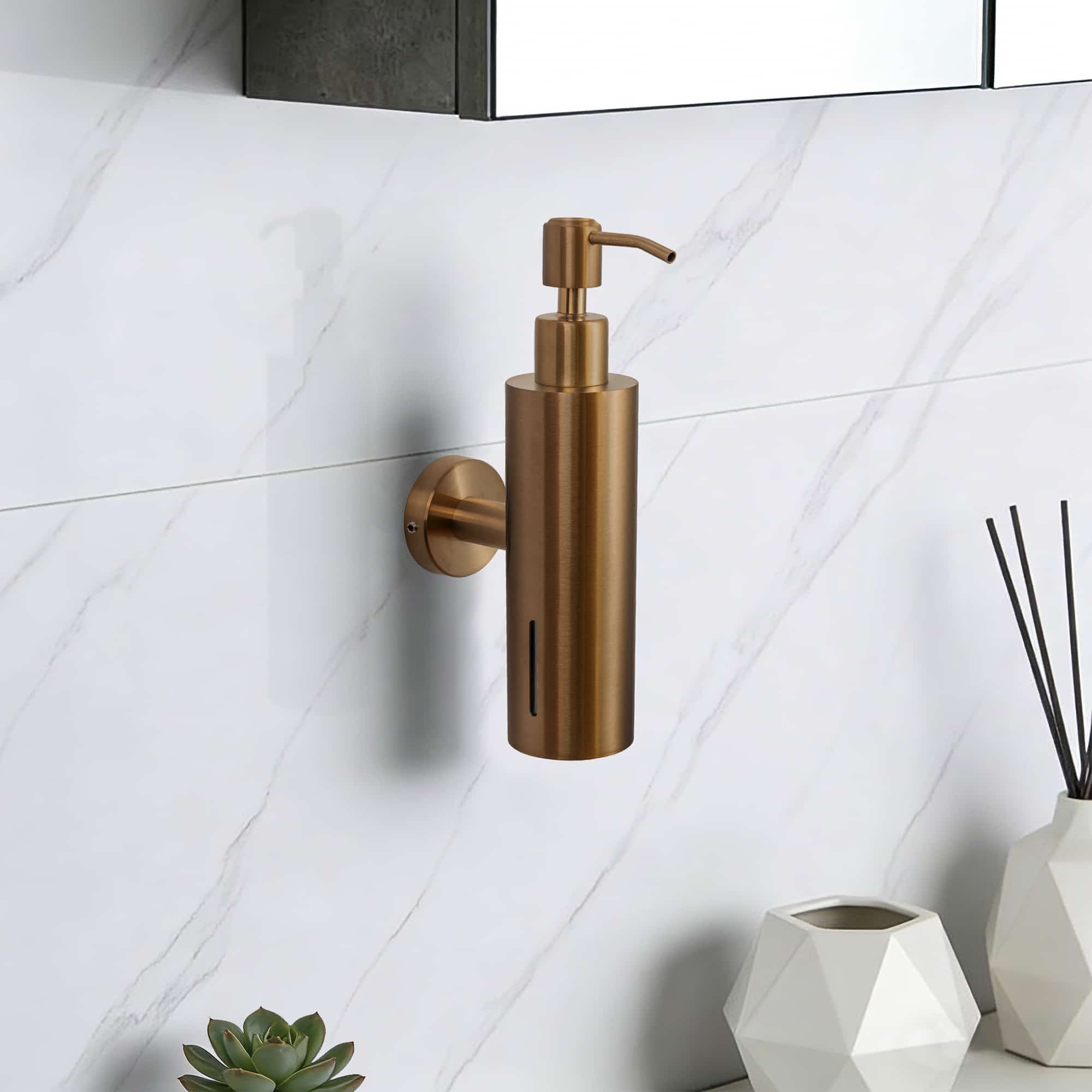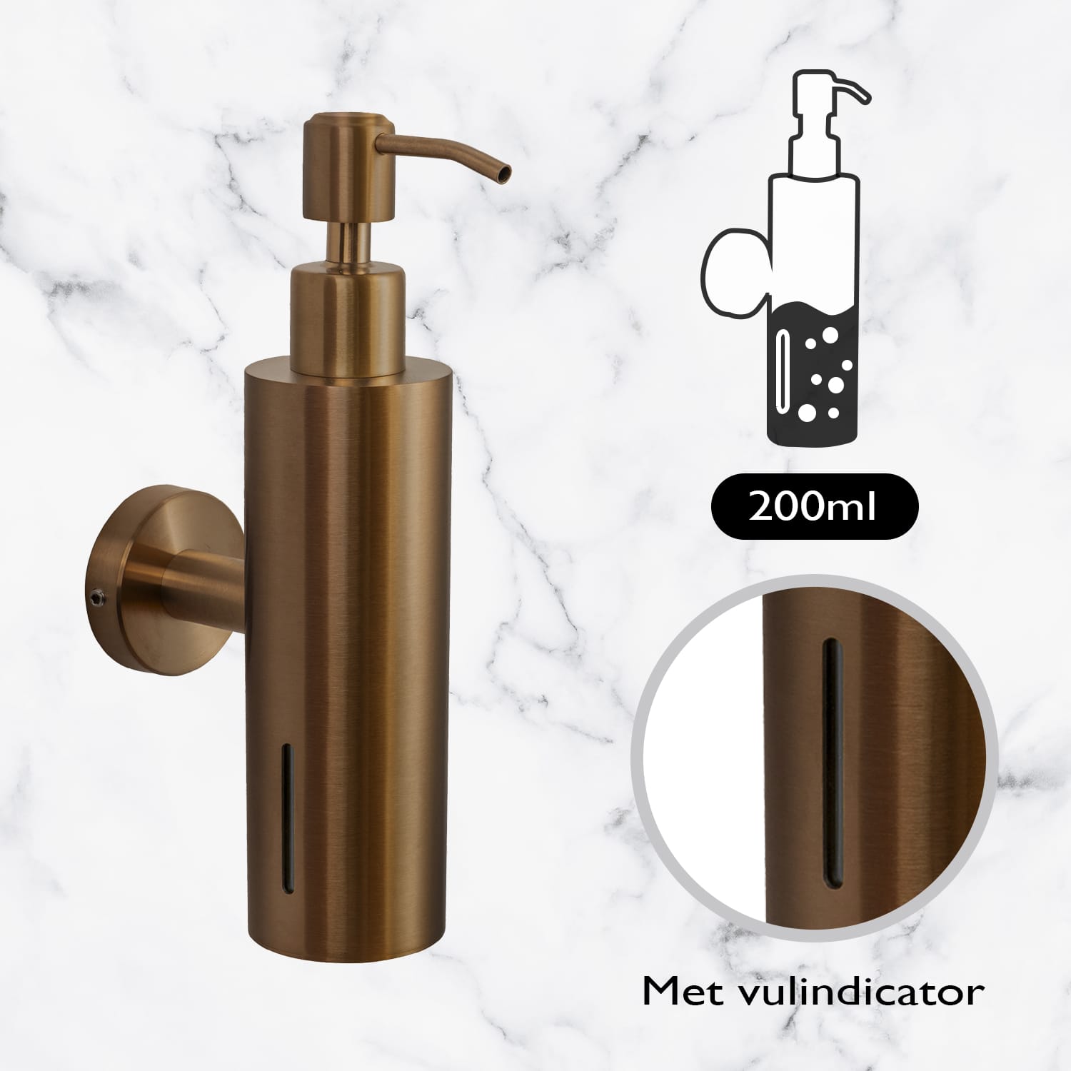 De VDN Stainless zeeppomp in koperkleur is een stijlvolle en functionele zeepdispenser die perfect past in een moderne badkamer of toiletruimte. Het geïntegreerde zeepreservoir is eenvoudig te vullen met vloeibare zeep en zorgt voor optimaal gebruiksgemak. Met de meegeleverde bevestigingsmaterialen monteer je deze wandgemonteerde zeepdispenser van RVS snel en stevig op de gewenste plek. De dispenser is vervaardigd uit hoogwaardig roestvast staal, wat zorgt voor duurzaamheid en een hygiënische toepassing. Aan de zijkant van het zeeppompje is zichtbaar wanneer bijvullen nodig is. De warme koperen afwerking geeft het geheel een luxe en eigentijdse uitstraling.